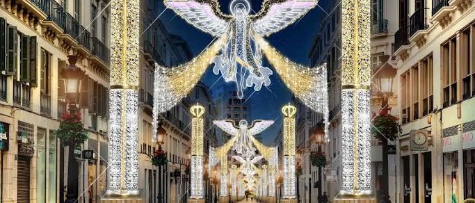 Marbella lights up with understated elegance. Avenida Ricardo Soriano, Plaza de los Naranjos, and the lanes around Iglesia de la Encarnación are covered in golden arches and classic Spanish motifs. Over in Puerto Banús, the vibe is more upscale — with lights wrapped around palm trees, yacht masts, and high-end storefronts. Look for the big tree in Plaza Antonio Banderas.