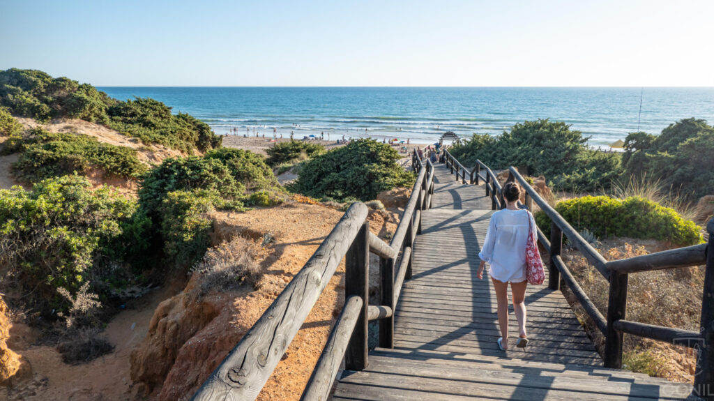 Just north of Conil de la Frontera, the Calas de Roche are a chain of wild, rugged coves carved into dramatic red cliffs—and they’re hands down some of the most photogenic beaches in Cádiz. Think soft sand, hidden staircases, and turquoise Atlantic waves crashing below. These aren’t your typical crowded costas; they’re for those chasing nature, solitude, and that “secret beach” feeling.